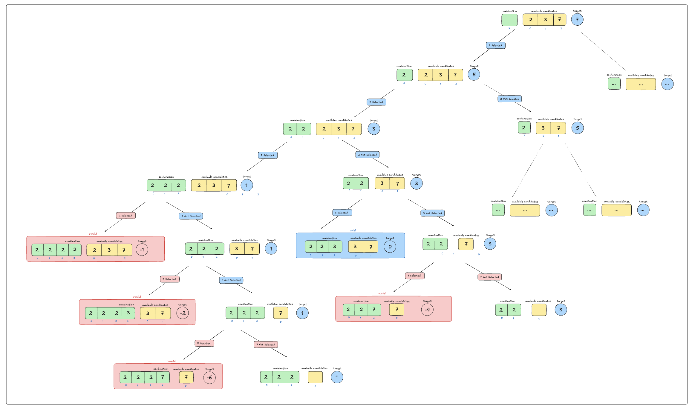 For every candidate, we can either include it in the combination or exclude it and move to the next candidate.